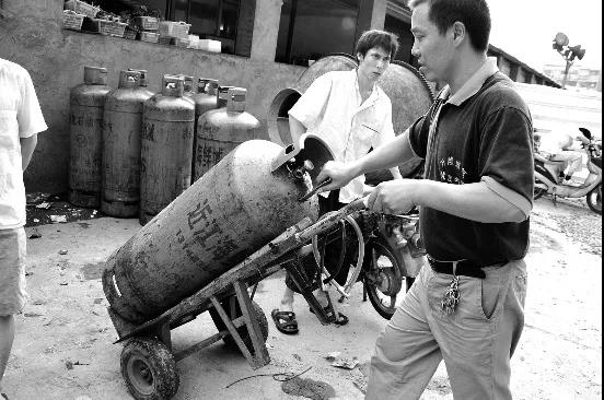 ▲瓶装液化石油气统一配送在运输“管家”的帮助下